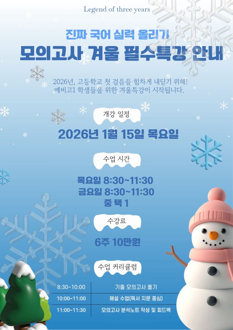 [삼년의신화 국어학원] 2026년 모의고사 겨울 방학 특강 안내!