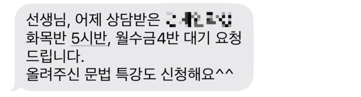 안녕하세요, 위드진영어의 꼼꼬미진쌤입니다. 정원마감으로 대기학생 발생중 가끔 "이런 학원이 있었나?" "왜 이제서야 봤지?"하시는 학부모님들이 계실때가 있어요. 이런 이야기를 들으면 더 열심히 노력해야겠다라는 생각이 듭니다. 저희가 더 열심히 해보도록 하겠습니다! 그렇게 진행된 상담에서는 간혹 안타까운 일들이 발생하곤 하는데요. 타학원 등으로 인해 원하는 타임 수업이 정원마감된 경우 수업을 못듣는 경우가 생기곤 합니다. 저는 보통의 경우, 대기를 권장드리지 않고 대기하는 시간을 아껴 최대한 학습을 이어갔으면 하는 바람인데요. 그 이유는 대기하는 동안 발생하는 학습누락이 걱정되기 때문입니다. ....... <img src="https://blogthumb.pstatic.net/MjAyNTEyMTJfMTc0/MDAxNzY1NTQwMjgwNTUx.hcKULzgbiwhmWx84chbfPKiMShznUX4GRKLlZm_R9QEg.sC_27SYGK4xL5Gh1ekEv05tg-MSzpLBmy09CbRE0_bYg.JPEG/output%A3%DF2286970457.jpg?type=s3" />