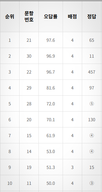 이 게시글은 2025년 11월 13일 목요일에 치른 2026학년도 대학수학능력시험 오답률 TOP 10 미적선택 기출문제의 풀이 및 해설입니다. 아래는 EBSi 오답률 TOP 10입니다. 예상등급컷 원점수/표준점수/백분위 최고점수 100/141/99 1등급(상위 4%) 87/131/96 2등급(상위 11%) 78/124/89 3등급(상위 23%) 69/117/77 4등급(상위 40%) 61/110/61 5등급(상위 60%) 40/094/40 미적 선택 8개 문항 중에서,,, 2022학년도 수능 4개, 2023학년도 수능 3개, 2024학년도 수능 4개, 2025학년도 수능 4개가 TOP 10에 올랐고, 이번 수능에서는 3개입니다. 이 포스팅에서는 이 3개 문항에 대해서만 풀이 및 해설합니다. 공통문항은 [오답률 탑10-공통] 2026학년도 대....... <img src="https://blogthumb.pstatic.net/MjAyNTEyMTFfMTMg/MDAxNzY1NDYxNDEwNjI5.qT8e5bnLFMaz82TnGLEiqxC3SDZKPOAJ8hy0_dpqjHog.KFYl_xKN426f6zt8-IzettZHSg5DBUC-22uBpuAwlRUg.PNG/image.png?type=s3" />