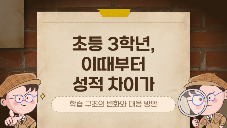 초등 1학년, 2학년 때 까지는 성적 차이가 크게 느껴지지 않습니다. 하지만 3학년이 시작되고, 2학기에 들어가면 "왜 점점 차이가 나는 걸까요?" 그 이유는 아이가 달라져서가 아니라 공부 방식 자체가 바뀌는 시기이고, 그 방식의 차이를 모르고 지나칠 수 있기 때문입니다. 1️⃣ 난이도는 급상승 하지만, '학습 기초 체력'은 준비되지 않은 상태 초등학교 3학년이 되었을 때 필요한 건 ✔ 읽기 체력 ✔ 집중 지속 시간 ✔ 과제 처리 루틴 학습 기초 체력 자체가 부족한 학생들이 많다는 사실입니다. 실제로 ✔ 계산은 맞는데 문제를 끝까지 안 읽어 틀리는 아이 ✔ 설명을 들을 땐 이해한 것 같은데 혼자 풀면 틀리는....... <img src="https://blogthumb.pstatic.net/MjAyNTEyMTdfNiAg/MDAxNzY1OTQxODYwMzUw.zZ_NYBbPrrM5YUPwqM0wjjNrYd_adS4jmUl_dZ9ONlYg.bG-k3af4Gyx7ZApmvxYa8QZq1XEQxy34tFpJRikcZAYg.PNG/1.png?type=s3" />