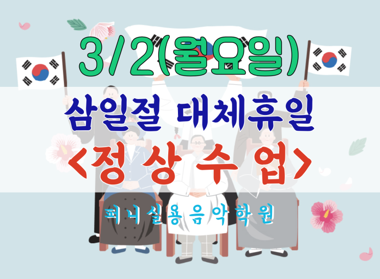 2026.03.02.(월) "삼일절 대체휴일" 정상 수업 안내입니다.^^