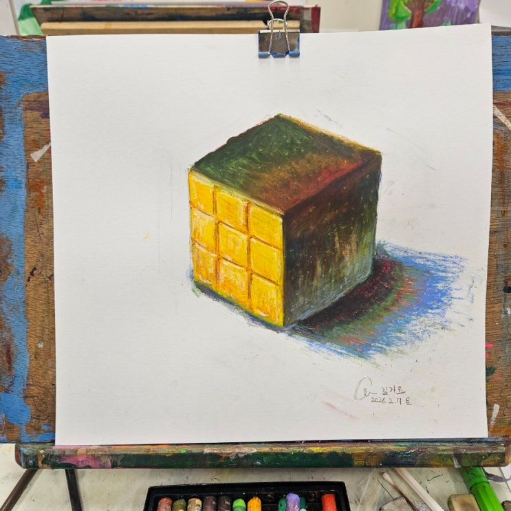 주제 : 《정육면체 소묘 》 수업 방식 및 내용 정육면체를 관찰하며 수직, 수평, 기울기를 정확히 보는 연습으로 수업을 시작합니다. 한쪽 눈을 감고 팔을 뻗어 연필로 기울기를 재는 방법을 익히며, 형태를 객관적으로 측정하는 관찰법을 배웁니다. 광원의 방향을 설정하고 빛과 그림자의 위치를 확인하여 명암의 기본 원리를 이해합니다. 그래파이트 재료를 활용해 면별 톤을 나누고, 명암 단계를 쌓아가며 입체감을 표현합니다. 전체 톤을 조율하며 형태의 정확도와 완성도를 높이고, 체계적인 관찰 → 측정 → 명암 → 마무리 과정을 통해 기초 소묘 실력을 탄탄히 다집니다. 그리다 인스타그램 주소예요 https://www.instagram.com/greensum....... <img src="https://blogthumb.pstatic.net/MjAyNjAyMjdfNzcg/MDAxNzcyMTI2NzgzNjI5.K088XtEK2vuxEX7uaCgvxS92PJ3S9yi_ytGPZkMZRC4g.tGoODsft0-KadcizbvARO-bspPnDTcbJHAf6jhYme3wg.JPEG/900%A3%DF1772126690179.jpg?type=s3" />