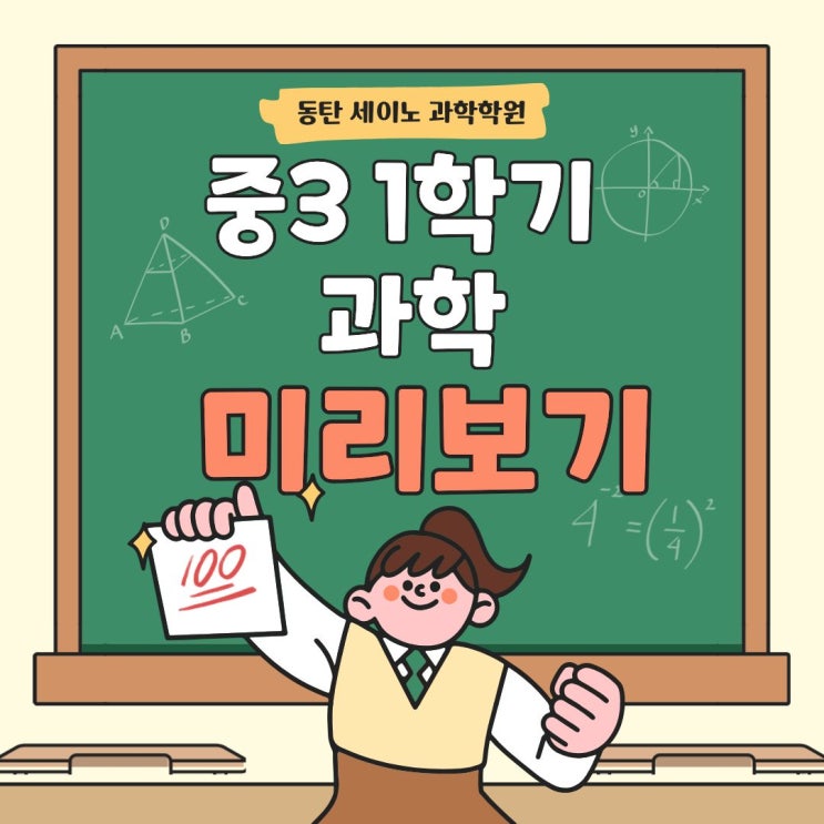 안녕하세요 동탄 과학학원 세이노입니다! 중학교 3학년은 과학에서 중요한 전환점입니다. 중3 과학은 고등 과학의 기초를 잡아주고, 개념 연결 능력을 키우는 단계이기 때문입니다. “중3 1학기 과학은 어떤 걸 배우나요?” “어디가 중요한데요?” 이런 질문을 정말 많이 주셔서, 오늘은 중3 과학 1학기 전체 단원을 한눈에 정리해드릴게요! 1단원. 화학 변화와 규칙성 이 단원은 물질이 어떻게 변하는지, 어떤 규칙이 있는지 배우는 파트입니다. 먼저, 물질 변화에는 두 가지 종류가 있어요. 물리 변화 : 모습만 변하고 성질은 그대로 예) 얼음이 녹아 물이 되는 것 화학 변화 : 새로운 물질이 생기는 변화 예) 철이 녹스는 것, 불이 붙는 것 중....... <img src="https://blogthumb.pstatic.net/MjAyNTExMDlfMTgg/MDAxNzYyNjcyMjU3NDkz.jLH4TeJQ2_EA6WV_J7702ngfSQIZQ1Rv1WyrxzikppEg.rARgsnUZaVxFIFBTEcNtsGLNpPbQDuNwFmmYSQNvd7Qg.JPEG/%C1%A6%B8%F1%C0%BB_%C0%D4%B7%C2%C7%D8%C1%D6%BC%BC%BF%E4._%282%29.jpg?type=s3" />