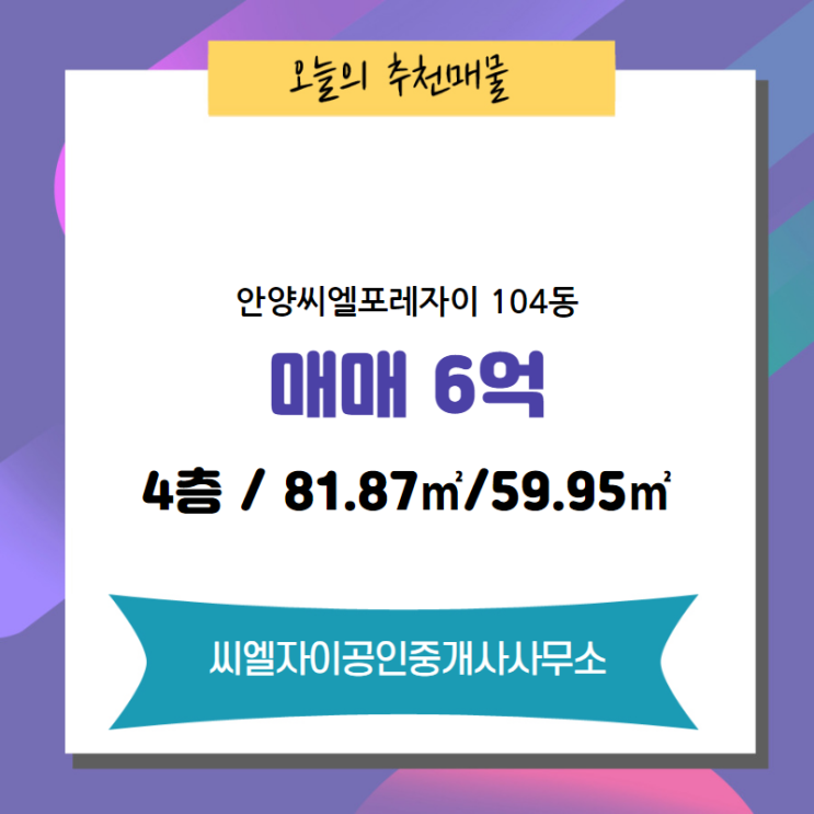 안양동 안양씨엘포레자이 104동 매매 씨엘자이공인중개사사무소