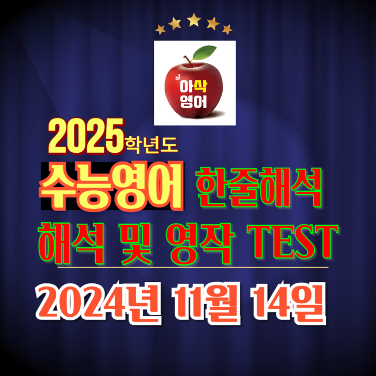 수능영어 (2024년 11월 14일 시행) | 2025학년도 수능영어 한줄해석,해석 및 영작TEST-아삭영어