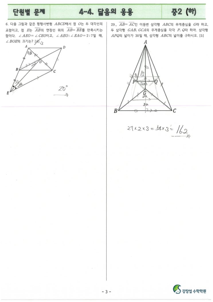 단원별문제-중2(하)-4-4.닮음의 응용-원장풀이