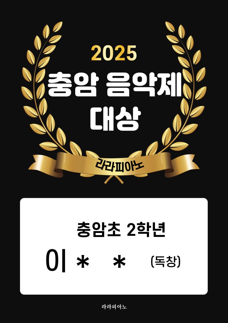 충암 음악제 대상 수상 (독창부문)::홍제동 라라피아노학원