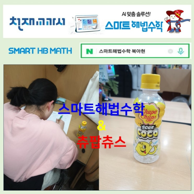 안녕하세요 스마트해법수학북아현 입니다. 스마트해법수학&츄팝츄스 오늘은 학습 공간에서 느낄 수 있었던 작은 응원 이야기를 학부모님들께 전해드리려고 합니다. 배움의 시간을 응원해 주는 따뜻한 마음 아이들이 집중해서 문제를 풀고 스스로 생각을 이어가는 시간은 무엇보다 소중합니다. 그런 배움의 순간을 더 기분 좋게 만들어 주는 작은 응원이 있다면, 아이들의 마음도 한결 가벼워지겠지요. 최근 교실에서 공부하던 아이의 책상 위에 놓인 상큼한 음료 하나가 눈에 띄었습니다. 바로 츄파춥스 사우어코코였습니다. 잠시 쉬는 시간에 아이들이 한 모금씩 맛보며 “맛있어요!”, “새콤해서 좋아요”라는 반응을 보이기도 했습....... <img src="https://blogthumb.pstatic.net/MjAyNTEyMTVfOTUg/MDAxNzY1NzkyNjgxNzA1.AELcN_aPFO8JVY8z6JCE-et_rz35osWZ8uTTtdqO8rYg.qOKAmQLPuIXV8qZ7OKBwtyImREJ__7dZZmKYSStNnxsg.JPEG/900%A3%DF1765792563507.jpg?type=s3" />