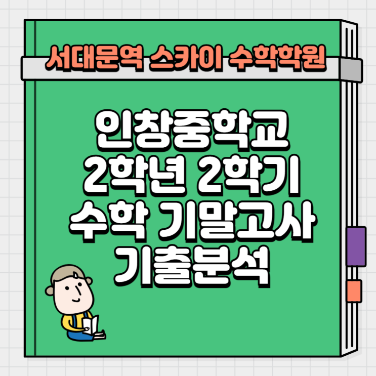 안녕하세요 오늘은 2-2 인창중 수학 기말고사 기출분석을 하겠습니다 인창중은 이번 시험에서 교과서와 시중문제집을 반반으로 출제하였습니다. 인창중은 최근 3개년의 경향으로 볼때 시험의 난이도가 점점 올라가는 추세입니다. 교과서 이외에 시중문제집으로 삼각형의 내각의 이등분선의 성질과 같은 개념들을 잘 숙지해두지 않고 공부했다면 100점을 받기는 어려울것으로 보입니다. 중 ~ 중상 난이도 안에서 제한시간내에 정확하게 문제를 풀어내는 연습을 하는것이 중요하다고 보여집니다. <img src="https://blogthumb.pstatic.net/MjAyNTEyMTZfMjAg/MDAxNzY1ODc4MjYyNzU3.mrp3YIezv0oh3Jewqa2ZNdTfsRSVmXRAugPlM0AXqK8g.gtCHh3avg0j_4XL18Gtn4EL-lZQEwmc7KM3uCO58GMog.PNG/002.png?type=s3" />