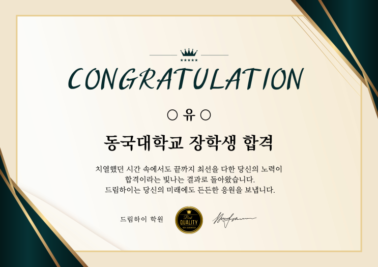 홍은동 입시 전문 드림하이 2026학년도 동국대학교 장학생 합격 축하합니다 ♥ [명지고 영어학원, 가재울고 영어학원, 충암고 영어학원, 동명여고 영어학원]