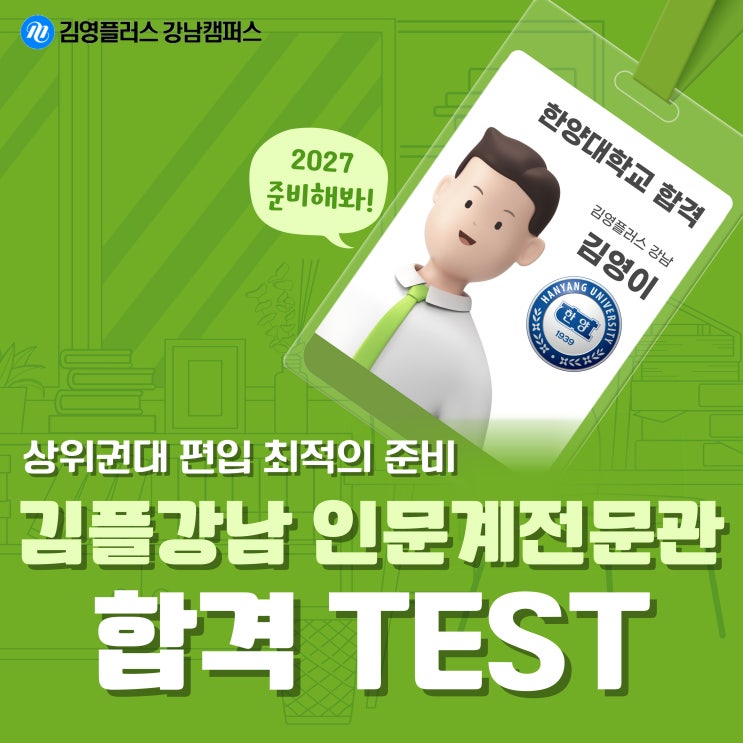 [강남편입학원] 김플강남 인문계 전문관 합격 테스트 프로그램 소개합니다