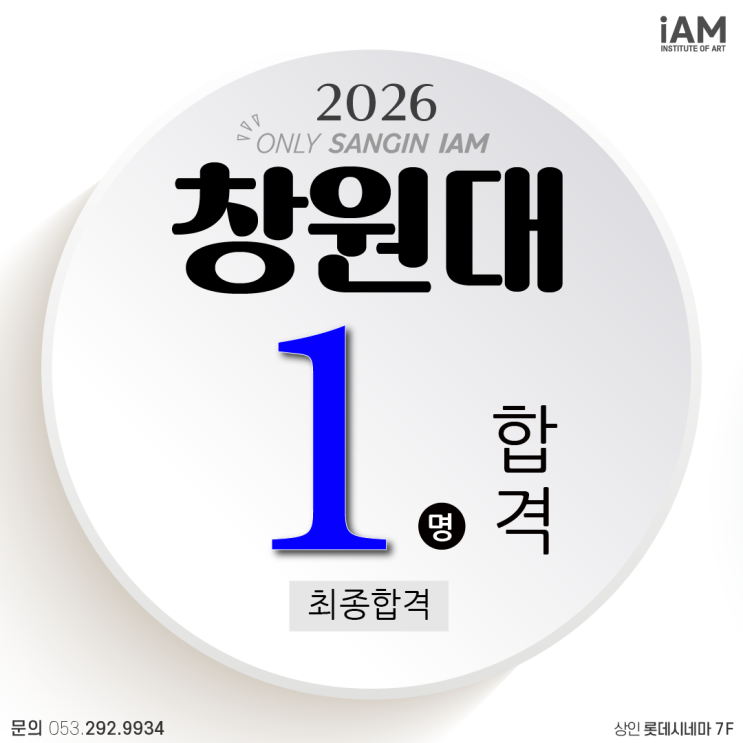 대구미술학원 대구입시미술학원 상인동미술학원 상인동입시미술학원 신월성미술학원 2026학년도 상인아이엠미술학원의 국립 창원대학교 최종명단 2026학년도 창원대학교 1명 최종합격 <img src="https://blogthumb.pstatic.net/MjAyNjAyMDVfNjUg/MDAxNzcwMjg1NzYxODg5.y4jiRDzKtYwZ0TRRyl6d3tT6_7vIPe8518ovAyS_NwEg.DoUGVfTbwvsCX7IDdqyXcYNi_vVZp22GH_OCQz1C2LYg.PNG/KakaoTalk_20260205_183449014.png?type=s3" />