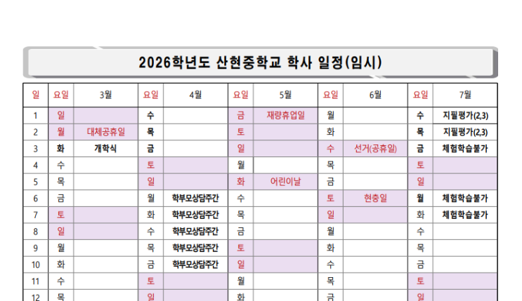 산현중학교 학사일정 정리해 봤어요! (이것만 보면 끝!)