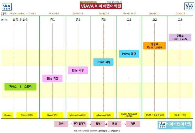 안녕하세요. 비아바랩어학원의 유리샘입니다. 오늘은 저희 비아바랩어학원만의 시그니쳐이자 랜드마크라고 할수 있는 비아바랩어학원만의 비전로드맵에 대해 이야기 나눠 볼까해요. 신규 상담을 오시면 학부모님들께서 많이 말씀 주시는 부분이 이렇게 커리큘럼 시스템이 한눈에 바로 알수 있어서 좋은거 같다고 칭찬을 많이 해주시더라구요. 특히나 블로그를 통해 미리 보았다면서 실제로 보니 더 탄탄하네요. 라며 감사하게도 상담오시는 학부모님들게서 저희의 진가를 알아봐주셔서 감동입니다. ㅜㅠㅠㅜ 저희 프로그램은 기본적으로 파닉스과정 - Elite(엘리트)과정 -Prime(프라임)과정 -Middle Cum Laude(중등부)과정- High Cum Laude(고등....... <img src="https://blogthumb.pstatic.net/MjAyNjAzMTJfMTU3/MDAxNzczMzEyODg5MDYw.yih7JFnm1IRRMPDRSFYZzrrOxzi8WYDjnp4alNvj9a0g.sHsQPLopZgLrIr3mO2yClb3YHqK1QRD2fvWaQBhIyXcg.PNG/image.png?type=s3" />