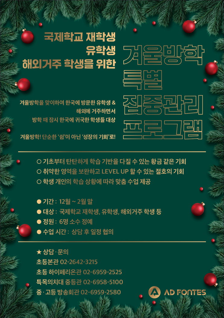 [초등하이페리온관] 국제학교,유학생,해외거주 학생들 대상 "겨울방학 특별 집중관리 프로그램"