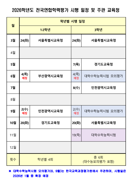 2026년 고1,고2,고3 전국모의고사(전국연합학력평가)일정 및 범위