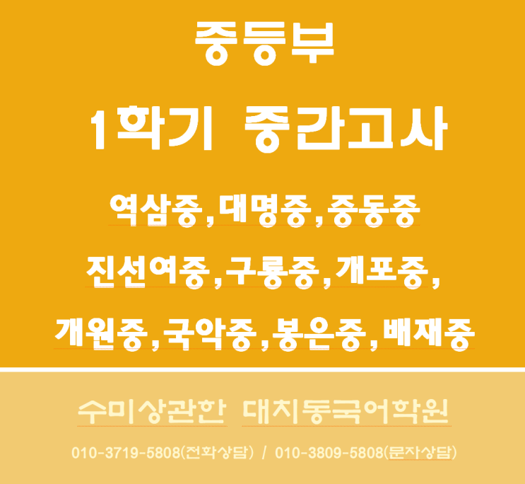 1학기 중간고사 국어내신 구룡중, 개원중, 개포중, 국악중, 대명중, 대치중, 배재중, 봉은중, 역삼중, 중동중, 진선여중 '대치동국어학원'