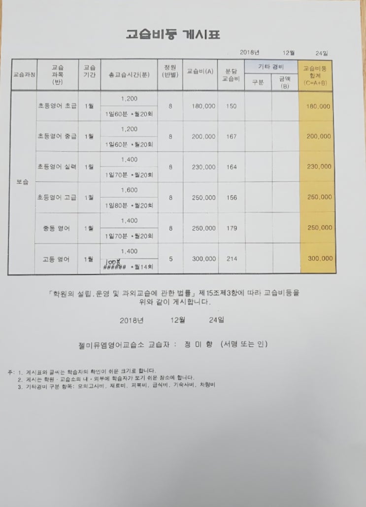 뮤엠 영어 교습비