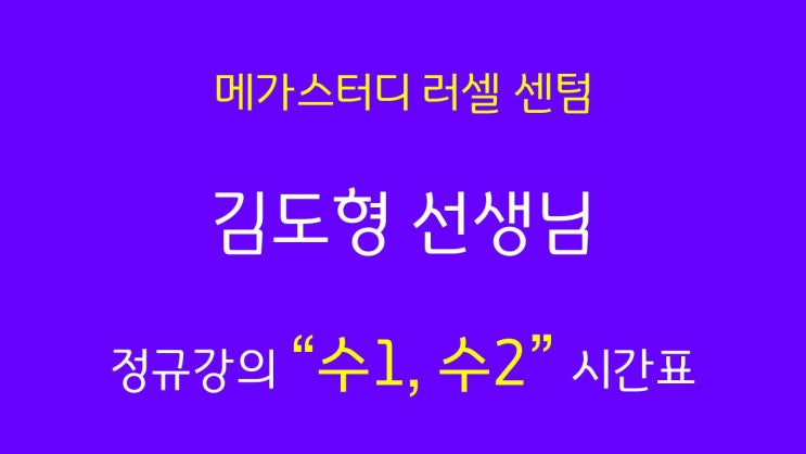 [메가스터디 러셀 센텀]✨수1,수2✨- 김도형 수학 선생님 "화요일,목요일" AM강의 안내 (대상: 재수,삼수,N수생)