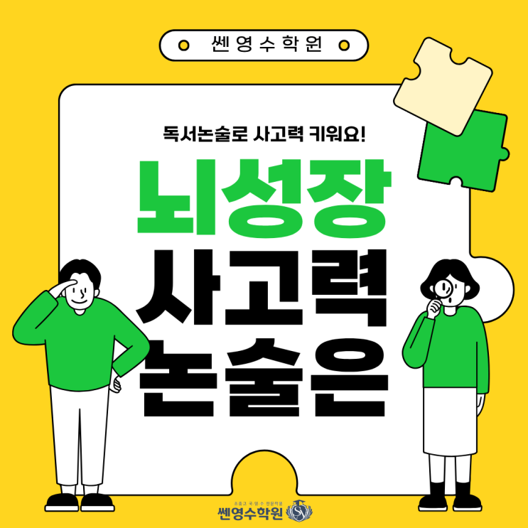 초등독서논술의 중요성 안녕하세요! 쎈영수학원입니다. 어느덧 차가웠던 겨울바람이 서서히 물러가고 새로운 시작을 준비하는 2월 말입니다^^ 초/중/고 학생이랄 것 없이 새로운 학년의 주인공이 되기 위한 열정이 뿜뿜하는데요! 오늘은 우리 아이들 사고력을 확장하고 실질적인 학습 능력을 키워주는 '뇌를 자라게 하는 독서와 글쓰기'에 대해 이야기해 보려 합니다 ദ്ദി◍•ᴗ•◍) 디지털 네이티브 세대와 우리 아이의 뇌 요즘 우리 아이들은 인터넷과 스마트폰이 활성화된 시대에 태어난 '디지털 네이티브' 세대입니다 2010년대 초반 이후 태어난 알파 세대이지요^^ 부모 세대가 텍스트 중심으로 정보를 찾았다면 요....... <img src="https://blogthumb.pstatic.net/MjAyNjAyMjVfMTkg/MDAxNzcyMDA3NzExOTk3.VSlO0W2KblN02gh9oSUbqZXXvYFE4uxj7uz1Sygulosg.l1jnpdHT95ZpJdK2lQVKj4w6j6Xxvhu_NipxXqojhbAg.PNG/%B8%DE%C0%CE.png?type=s3" />