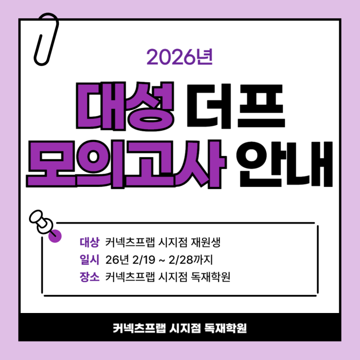 반갑습니다~ 대구독재학원 커넥츠프랩 시지점입니다. 본격적인 2027학년도 수능 대비를 위해 대구독재학원 커넥츠프랩 시지점에서 3월 대성 더 프리미엄 모의고사 접수를 시작합니다. 실전 감각을 끌어올리고 현재 나의 객관적인 위치를 파악하기 위한 가장 확실한 방법? 바로 질 좋은 모의고사에 응시하는 것입니다. 이번 모의고사 관련 세부 사항을 명확하게 안내해 드립니다. [3월 대성 더프 접수안내] 재수생·N수생 필독! 커넥츠프랩 시지점 시행 일정 및 접수 안내 모의고사는 오직 대구독재학원 재원생만을 대상으로 진행되며, 외부생은 응시가 불가합니다. 시험 일자: 2026년 3월 17일 (화) 접수 기간: 2월 19일 ~ 2월 28일....... <img src="https://blogthumb.pstatic.net/MjAyNjAyMjZfMjc1/MDAxNzcyMDc2MTg2ODU5.wCzpMYREdMBMaJ1FCTQGyDc1wVP_KX4jKv6bh_sk9Ugg.9HT4HZ3iOhzRITwDi0H-msTWPhUpzwer8rB_7Y7n8g4g.PNG/%C6%F2%B0%A1%BF%F8%BD%C3%C7%E8_%C7%A5%C1%F6_%28%BC%F6%B4%C9%B0%FC%29-001.png?type=s3" />