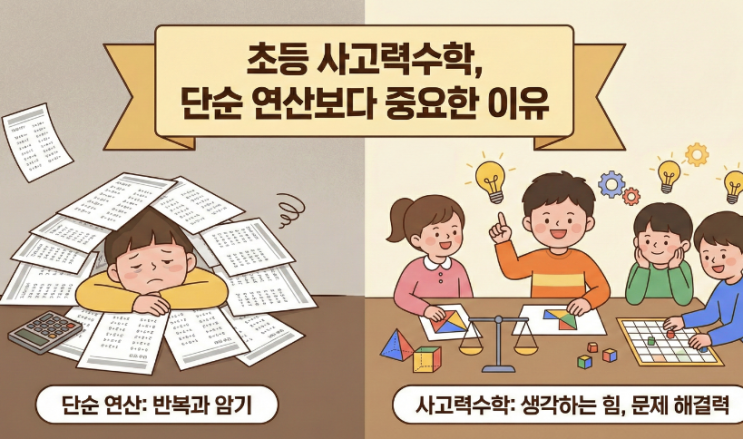 안녕하세요 시매쓰 부평부개센터 학원입니다. 오늘은 초등 사고력수학이 단순 연산보다 중요한 이유에 대해 알아보겠습니다. 혹시 이런 상황 경험해 보셨나요? 구구단은 완벽한데, 조금만 응용되면 손을 못대요. 초등 저학년 때는 받아쓰기도 잘하고 덧셈, 뺄셈도 막힘없이 잘 풀던 아이가 초등 3~4학년 넘어가면서 갑자기 수학이 싫다고 하는 경우가 생각보다 정말 많습니다. 학부모님들 입장에서는 "그동안 열심히 학원 보냈는데 왜?"라는 생각이 들기 마련이고, 학원을 계속 보내야 하는지에 대한 고민이 깊어집니다. 연산은 빠른데, 사고력이 받쳐주지 않으면 학년이 올라갈수록 한계가 온다는 것은 분명합니다. 연산만 잘하면 된....... <img src="https://blogthumb.pstatic.net/MjAyNjAyMjdfMjg2/MDAxNzcyMTc1NjAzODA2.7pn_Jd7HfPv3M3H9uq9h5owB_nGWxl2JUH6rXTsQbYkg.PTPk7VeoVy2wPHZKfY6158y63XVWyqZY1TLNkuErtpYg.PNG/image.png?type=s3" />