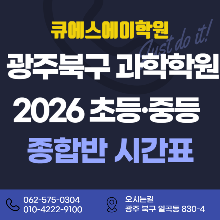 광주북구 과학학원, 큐에스에이학원 – 2026년 초·중등 종합반 시간표 안내