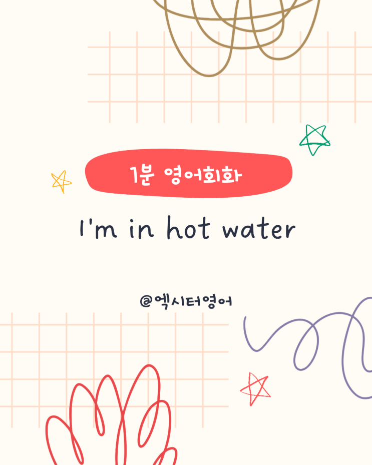 안녕하세요! 한주간 다들 잘 지내셨나요? 유난히 많은 일들이 있었던 한주였던것 같은 기분은... 저만 그런가요? ㅜㅜ 오늘도 1분 영어회화를 클릭하신 여러분! 멋져요~ 지난주 1분 영어회화 안보셨거나 까먹으셨다?! 아래 클릭하고 돌아오세욧~~ https://blog.naver.com/exeterenglish/224223105595 #호매실성인영어 #호매실성인영어회화 #호매실직장인영어 #관리형성인영어 #영포자탈출 그럼 다함께 출발해볼까요? 오늘 배울 표현은 바로 I'm in hot water 라는 표현이에요~ #호매실성인영어 #호매실성인영어회화 #호매실직장인영어 #관리형성인영어 #영포자탈출 A: What's the matter? B: My company is in hot water over tax issu....... <img src="https://blogthumb.pstatic.net/MjAyNjAzMjZfMjIx/MDAxNzc0NTI4MDM2NjUz.tXIAalHD_bUIvKo5xfUS6fCTdAshGTpO4VHTLvgzpcQg.14mWn5e1qHE9HQPeVhAGMG_-qi5x_CSl7LAdbRW5KDYg.PNG/KakaoTalk_20260326_212613425_01.png?type=s3" />
