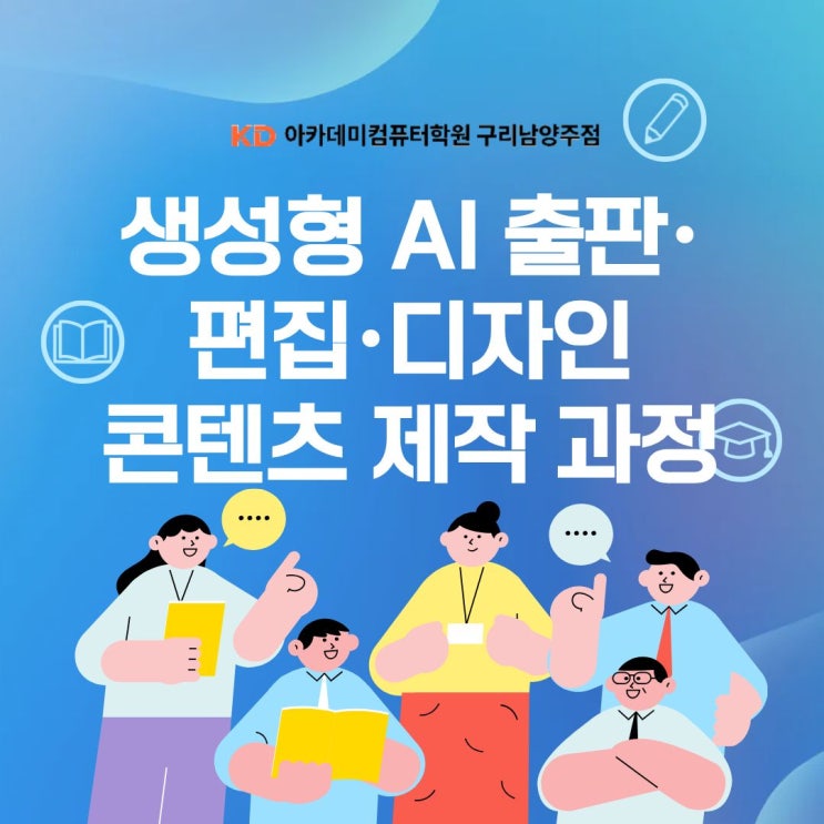 [구리컴퓨터학원] 국민내일배움카드로 국비지원 받아 그래픽디자이너로 취업하기 영상편집디자이너 광고디자이너 구리 포토샵 학원을 찾는 분들이라면, 광고디자인 실무 교육을 함께 배울 수 있는 산업구조변화대응특화훈련 생성형 AI 편집디자인(양성) 국비지원 과정입니다. 구리 디자인 학원, 어디서 시작해야 할지 고민이라면 이 국비지원 과정에서 답을 찾을 수 있습니다 [구리컴퓨터학원] 국민내일배움카드로 국비지원 받아 그래픽디자이너로 취업하기 영상편집디자이너 광고디자이너 ✨ AI로 ‘책’까지 만드는 시대 생성형 AI 출판편집디자인 콘텐츠 제작 과정 모집중 요즘 콘텐츠 시장에서 가장 빠르게 성장하는 분야는 바로 생성형....... <img src="https://blogthumb.pstatic.net/MjAyNjAzMjZfMjcg/MDAxNzc0NTAwNjQ3NTYz.fOpGQaaWtadmU8yUG4MVzOWd0405lQ1JUl6LSnFGv0og.0rTbecNaIq_wY9kTMw0PtQCrcWJD3chghsjFB-V2L7Yg.JPEG/1.jpg?type=s3" />