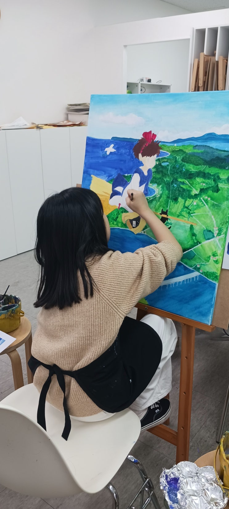 아크릴캔버스화 20호 도전 오늘은 정말 특별한 수업이었어요. 아이들이 20호 대형 캔버스에 아크릴 물감으로 자신만의 그림을 완성하는 날이었거든요. 이번 방학에는 자유주제로 도전해 보았습니다. 평소보다 훨씬 큰 캔버스 앞에서 처음엔 살짝 긴장한 표정이었지만, 연필을 잡는 순간부터 눈이 반짝반짝 빛났답니다. ✨ 처음에는 어디서부터 작업할지 막막하지만 아이디어스케치 구상 등 선생님과 함께 소통하며 원하는 구도를 잡고나면 팔 전체를 쓰는 붓질 배경부터 구도를 고민하는 눈빛 색을 섞고 덧칠하며 생기는 자신감에 온 몸으로 그림을 그리고 있는 아이들을 만나게 됩니다. 처음엔 "이렇게 큰 거 다 칠할 수 있을까?" 하....... <img src="https://blogthumb.pstatic.net/MjAyNjAzMjRfMTc1/MDAxNzc0MzIzMTQxOTUw.bwOc7s4ByPBiaIlOTW1bvsF2caPe8ZwZbAOewDbUZBAg.UNOuVOy_zr4b3yPhDW4XSyaWlrnOUpl534swcM4LDAMg.JPEG/KakaoTalk_20260324_120023551_09.jpg?type=s3" />