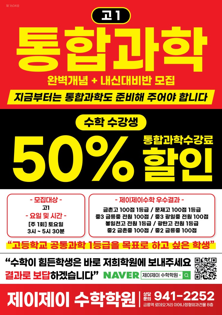 안녕하세요! 금릉 수학학원 금릉 수학전문학원 금릉역 로데오거리에 있는 제이제이 수학학원입니다. 고1 통합과학 4월 4일(토)부터 중간고사 시험대비 수업이 진행됩니다. 고등학교 1학년이 되고 맞이하는 첫 번째 시험, 중간고사! 좋은 출발을 위해 철저한 대비가 필요합니다. 특히 통합과학은 다양한 개념이 혼합되어 있어, 단순 암기보다는 체계적인 학습이 필수적입니다. 금촌동 과학학원 추천, 제이제이 과학 금촌동에서 체계적인 시험 대비 수업을 찾고 계신가요? 제이제이수학학원에서 4월 3일 토요일부터 고1 통합과학 중간고사 대비반을 시작합니다! 고1 첫 1학기 중간고사 전, 실전같은 연습을 하고 싶은 학생들을 위해 준비했습니다. ....... <img src="https://blogthumb.pstatic.net/MjAyNjAzMjdfMjI0/MDAxNzc0NTUzMjk4NTMz.8LclKZd6GillwbndYBUVq0iJ4dI1JafGDStqbhDs1qgg.11Aw6n1qgM828WNmVnfQGzYe61125i0NCtNxjdVXggYg.JPEG/KakaoTalk_20251222_094539454_01.jpg?type=s3" />