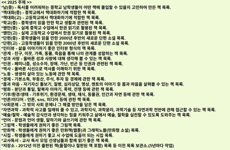 2025 물꼬방 추천 도서 목록