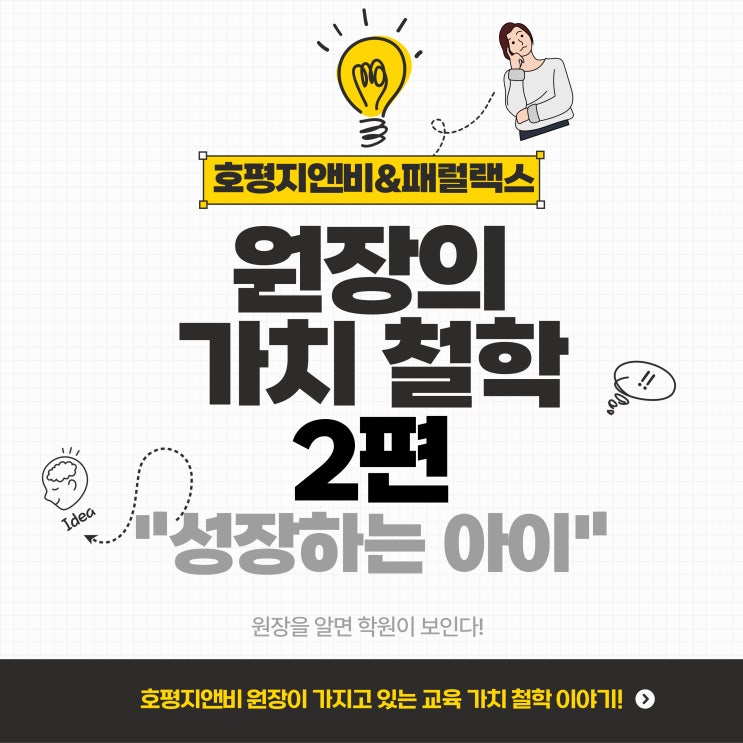 이 글은, 아이의 점수보다 방향을 고민하며 성장하는 사람으로 키우고 싶은 한 학원장의 교육철학을 기록 한 글입니다. 호평지앤비&패럴랙스 원장의 교육 철학 시리즈 ② 잘하는 아이보다, 성장하는 아이로 키우고 싶습니다. 우리 아이는 지금 '잘하는 아이'일까요? 아니면 '성장하고 있는 아이'일까요? 저는 아이들을 볼 때 '지금 얼마나 실력이 좋은지'보다 '얼마나 변하고 있느냐'를 먼저봅니다. 성적이 빠르게 오르는 아이도 있지만, 조금 느린 속도로 자신만의 변화를 만들어 가는 아이도 있습니다. 그리고 긴 시간 아이들을 지켜보며 알게 된 사실은 하나입니다. 결국 멀리가는 아이는 잘하는....... <img src="https://blogthumb.pstatic.net/MjAyNjAyMjNfMTUg/MDAxNzcxODEwNDg4MzAw.iJyePzxnSEQUjufzvSL0-yFAFcF9xR707BMEi5DPZWIg.v33IvuGejmn5w6SWIOSMz2i9pqvo7yT35dUKJLNDdJUg.JPEG/%C1%A6%B8%F1%C0%BB-%C0%D4%B7%C2%C7%D8%C1%D6%BC%BC%BF%E4_-001_%2864%29.jpg?type=s3" />