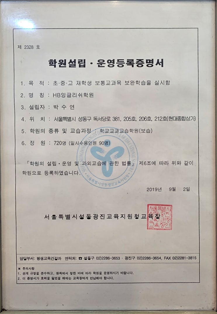 [26년 학원운영등록증명서및 교습비]