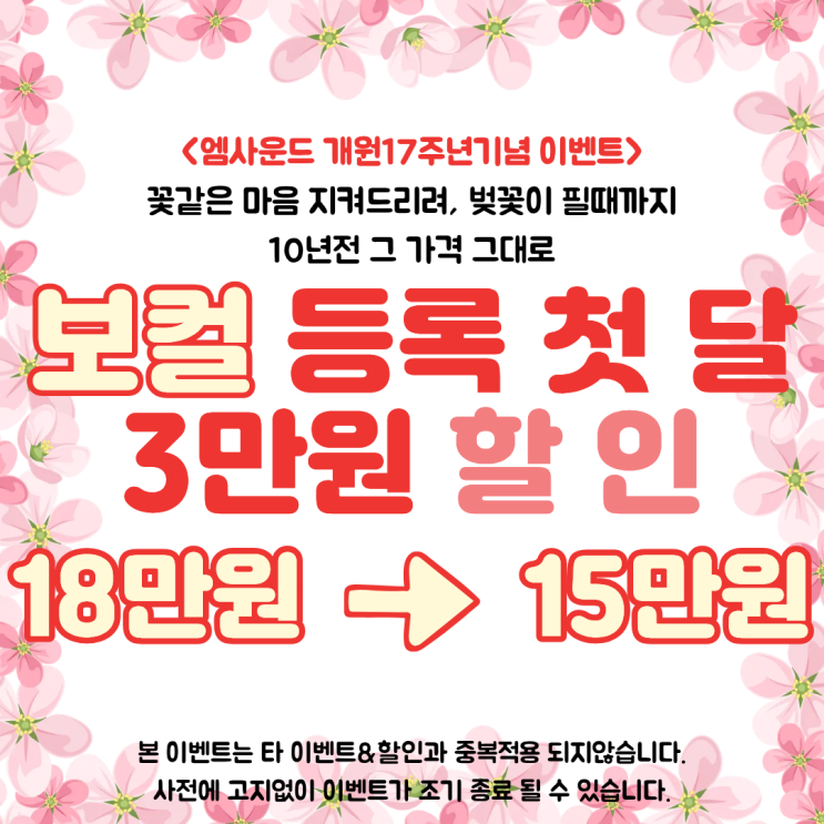 [EVENT] 엠사운드 개원 17주년 기념 이벤트 김포검단실용음악학원