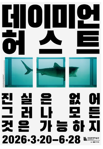 안녕하세요. 압구정 본원 바른미술학원입니다. 오늘은 흥미로운 전시소식 하나를 들고왔는데요!! 내일부터 국립현대미술관 서울관에서 세계적인 현대미술가"데이미언 허스트" 의 대규모 전시가 시작됩니다 지난번 론 뮤익 전시에서는 인간의 몸을 극대화하여 확대하거나 축소한 존재들을 보여주었다면, 이번 전시는 삶과 죽음이라는 주제로 공간을 가득 채우고 있습니다. 허스트는 포름알데히드 용액 속 동물을 활용한 작업 등으로 잘 알려져 있으며, 생명과 죽음을 직설적이면서도 철학적으로 탐구하는 작품 세계를 구축해왔습니다. 이번 전시에서도 대표적인 ‘자연사(Natural History)’ 시리즈를 비롯해 회화, 조각 등 폭넓은 작품....... <img src="https://blogthumb.pstatic.net/MjAyNjAzMTlfMTU0/MDAxNzczOTAzMDQ2OTAy.Vkc9d68teN64K_F1OvlGQw3YSiaWLFzMgrWT-PtKfQcg.HGqlK1ZGQwt1cA3xbnfeq3eV5KZpowgbThb1VpNn98Qg.JPEG/1.jpg?type=s3" />