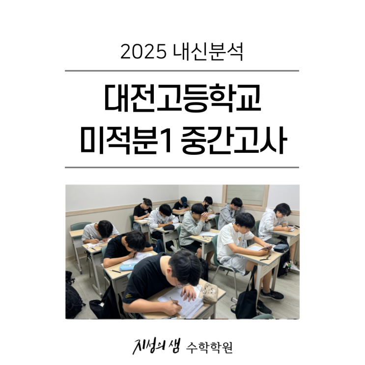 안녕하세요. 지성의샘 수학학원 둔산점입니다. 둔산여자고등학교 2025년 2학년 미적분1 중간고사 분석자료 입니다. 출제 요약 출제 범위 : 함수의 극한 ~ 도함수의 활용 문제 유형 : 객관식 19문항, 주관식 4문항 함수의 개형을 유추하고 다양한 경우에 대해 성립하는지 판단해야 하기에, 직관적인 풀이 능력이 부족하다면 시간이 부족했을 것 입니다. 어려운 문제가 상당수 출제되었으나, 쉽고 빠르게 넘길 수 있는 문제도 많았기 때문에 킬러문항에 시간을 얼마나 확보할 수 있었냐로 점수가 갈렸을 것입니다. 하 난도의 문제라고 해도, 계산만 잘 한다고 해서 풀 수 있는 문제들이 아닙니다. 쉬운 문제를 많이 틀린다면 개념에 대한 숙지도 잘....... <img src="https://blogthumb.pstatic.net/MjAyNjAyMjdfMTI2/MDAxNzcyMTg3NDY1NjAz.kl98mheN-daUPgcwFO1BoLbKU4XqBmu3eHuodBAigrAg.Oc_RVSuLhxAkOEWo3PNxIPOqO9asogonpoaHdaJo7W8g.PNG/%B3%BB%BD%C5%BA%D0%BC%AE-%BA%ED%B7%CE%B1%D7-%C0%CC%B9%CC%C1%F6-008.png?type=s3" />
