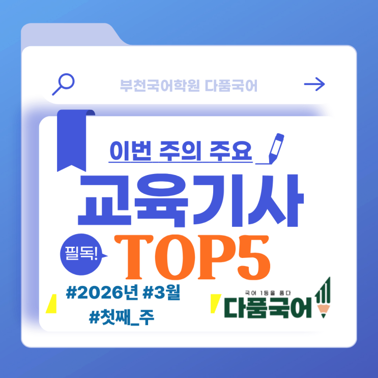 [부천 국어학원 다품국어] 26년 3월 첫째주 주요 교육입시기사 TOP5 스크랩