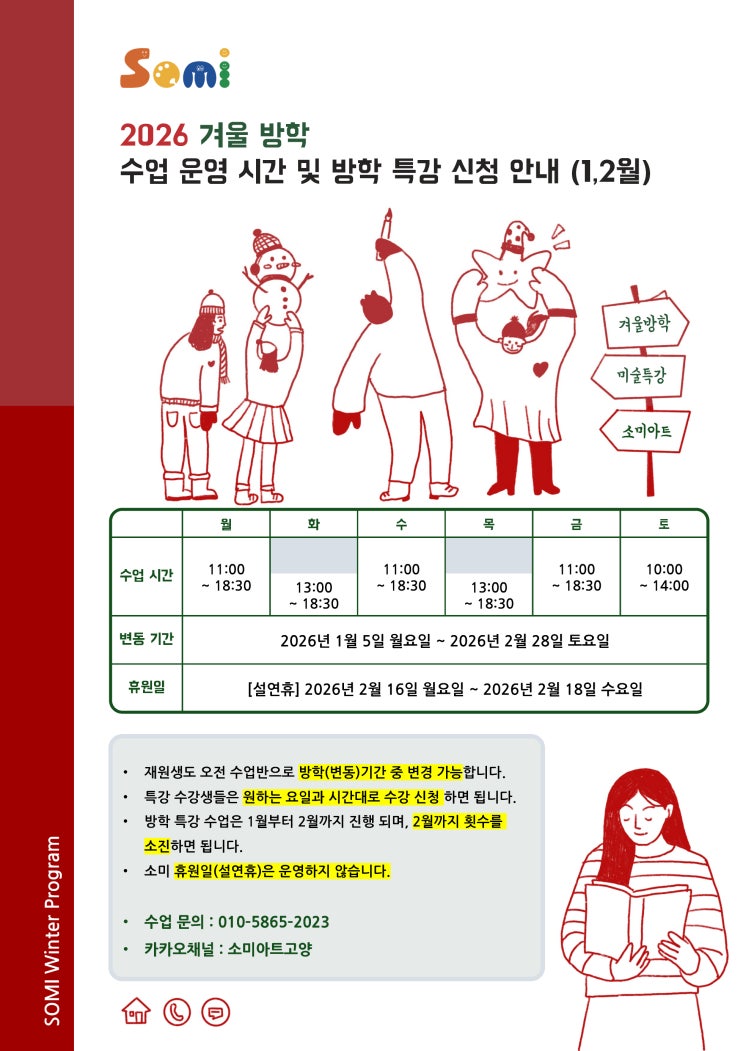 [지축미술] 2026년 겨울방학 특강 안내|지축미술학원 소미아트센터 겨울 클래스 모집