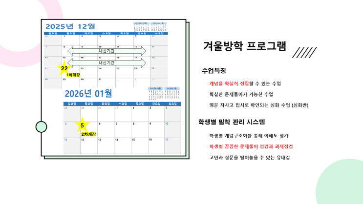 후곡 참교집 수학학원 겨울방학 프로그램 안내