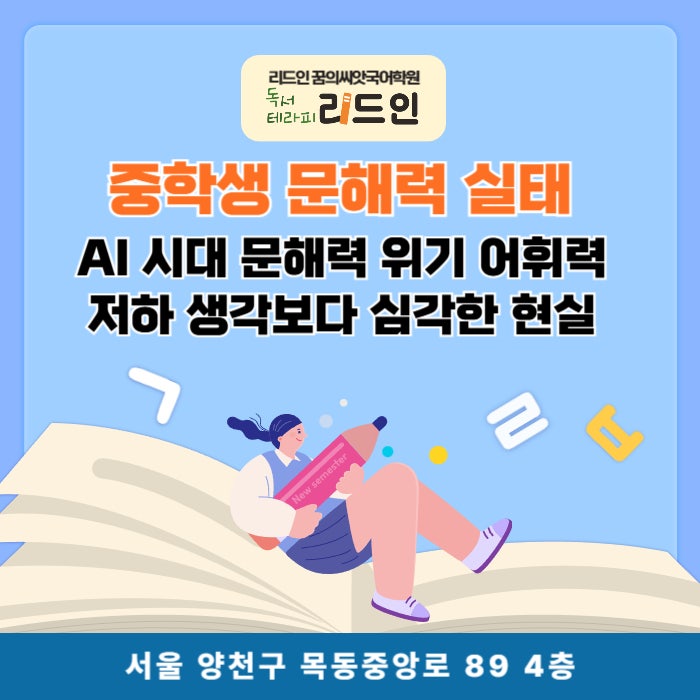 양천구목동 중학생 문해력 실태 - AI 시대 문해력 위기 어휘력 저하 생각보다 심각한 현실
