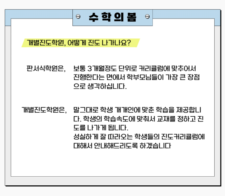 수학의봄 개별진도학원, 진도 얼마나 나가나요?
