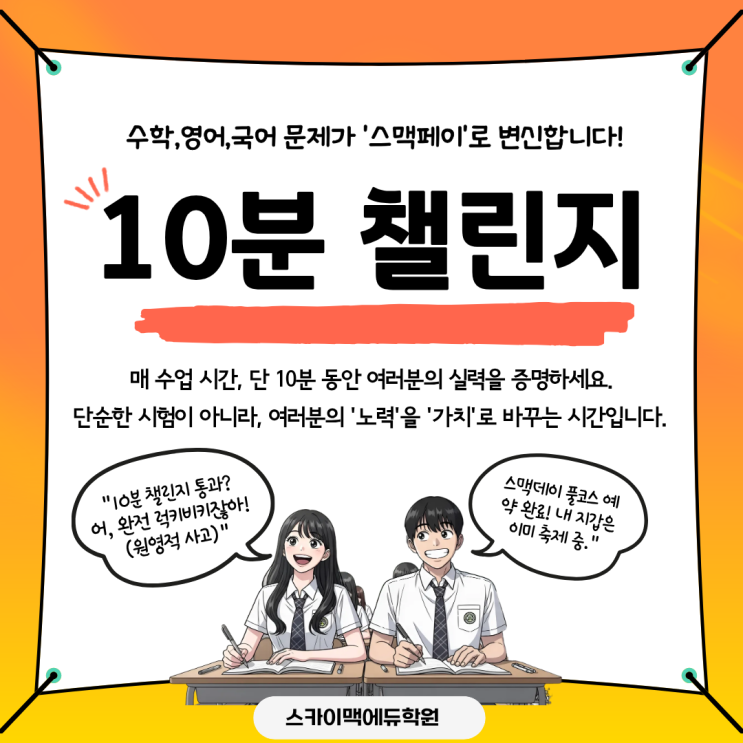 10분 챌린지로 1학기 중간고사 고등부1등급, 중등부A등급 !!
