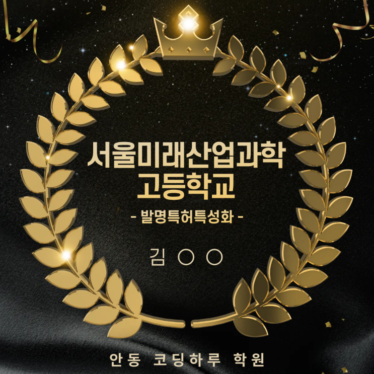안녕하세요. 안동 코딩하루 학원입니다! 요즘 학부모님들의 관심사 바로 안동 코딩하루 학원 학생의 과학고 • 특성화고 합격 소식과 준비 과정을 소개해 드리겠습니다. 우리 학생의 새로운 시작을 응원합니다. 서울미래산업과학고등학교 김 ○ ○ 안동중학교(前 안동고) 입학을 축하합니다 일반고에서 이제는 진로를 선택하는 첫 단계! 스스로 가장 좋아하고 원하는 길을 스스로 선택하고 준비해온 결과입니다. 평소 코딩, AI, 드론과 같은 분야에 또래에 비해 높은 수준과 관심도가 높았던 학생 매 주 학원에 오면서 주기적인 1:1 면담, 진로 설계를 했던 부분과 수업을 진행하면서 학생과 토론하듯....... <img src="https://blogthumb.pstatic.net/MjAyNjAyMjhfOTgg/MDAxNzcyMjE1MjQwMjcw.31AXVoo91RV4UKWppOVSl0X7VY_oCgs8UBZkHF5Ayiwg.I93Hf66VE1yOeSH8-29zS0Vb8Vl2NPusw2G7xO5qYh4g.PNG/2-26_%BC%AD%BF%EF%B9%CC%B7%A1%BB%EA%BE%F7%B0%FA%C7%D0%B0%ED%B5%EE%C7%D0%B1%B3_%B1%E8%C7%D1%B0%E1.png?type=s3" />
