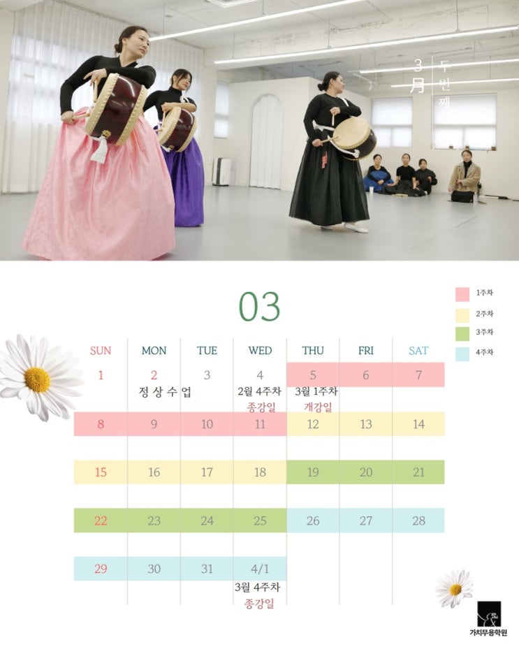 #가치무용학원 2026년 3월 시간표 및 프로그램 안내입니다 3/1절 및 대체공휴일에도 휴강 없이 정상진행됩니다 <img src="https://blogthumb.pstatic.net/MjAyNjAyMjVfMzMg/MDAxNzcxOTgxNjE3OTQ0.ObTfEF9Jczy4jf9gz3zMsFP2qsoiZvPxTgsh2c2imsYg.INiwY3-W88gPu47Ao3mCjC_1xUUjAVoCwuYNaK2gzRUg.JPEG/3%BF%F9.jpg?type=s3" />