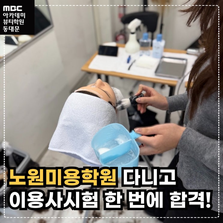 안녕하세요! 노원미용학원 MBC아카데미뷰티 입니다 :) 오늘은 이용 분야 자격 취득을 준비하는 분들을 위해 노원미용학원에서 체계적으로 준비하는 이용사시험 과정에 대해 자세히 안내해 드리려고 합니다. 자격증 취득을 목표로 한다면 어디에서, 어떻게 준비하느냐가 결과를 좌우합니다. 특히 실기 비중이 높은 이용사 자격의 특성상 교육 환경과 커리큘럼은 매우 중요합니다. 오늘은 노원미용학원의 교육 시스템과 이용사시험 준비 전략을 정리해 드리겠습니다. 차근차근 읽어보시고, 준비 과정에 도움이 되시길 바랍니다. 이용사시험, 왜 체계적인 준비가 필요할까? 이용사시험은 필기와 실기로 구성되어 있으며, 특히 실기 시험의 완성도가....... <img src="https://blogthumb.pstatic.net/MjAyNjAyMjNfMTMy/MDAxNzcxODMwOTQxMzQ0.rYZEQexjnxAnlgtOlZJ2Mo8KR_c4mXI2-C2l2FDvW5Mg.8-KR-4_4S3TgvDMXwKGi6z4EUDRrAk-KaKLkp130hEcg.JPEG/%B3%EB%BF%F8.jpg?type=s3" />