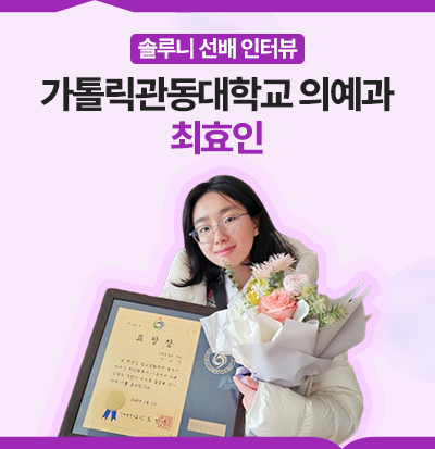 입시라는 긴 과정에서 성과를 만드는 힘은 오랜 시간 쌓아온 사고의 기반과 꾸준한 루틴에서 만들어집니다. 솔루니 선배 인터뷰 네 번째 주인공은 2026학년도 수시 교과전형으로 가톨릭관동대학교 의예과에 합격한 최효인 학생입니다. 꾸준히 계획을 실천하고 독서를 통해 기른 통합적인 사고력이 좋은 결과로 이어지기까지의 과정을 들어보았습니다. Q. 자기소개 부탁드립니다. 안녕하세요. 2026학년도 수시 교과전형으로 가톨릭관동대학교 의예과에 합격한 최효인입니다. 중학교 2학년부터 고등학교 입학 전까지 2년간 솔루니를 학습했습니다. Q. 학습 목표와 계획은 어떻게 세웠나요? 공부에 진심이 된 계기는 중학교 2학년 첫 시험에서 우연....... <img src="https://blogthumb.pstatic.net/MjAyNjAyMjdfNzYg/MDAxNzcyMTU1NDkxMTAw.UGJjvbdk2_mf2R2GMbq9yWg3JaBBiRHFtJWv0QUYt94g.oLHZusRWfmhXDKd6IW7zeSa6F7A0hUeeOxuj7ULVJmgg.JPEG/0.jpg?type=s3" />