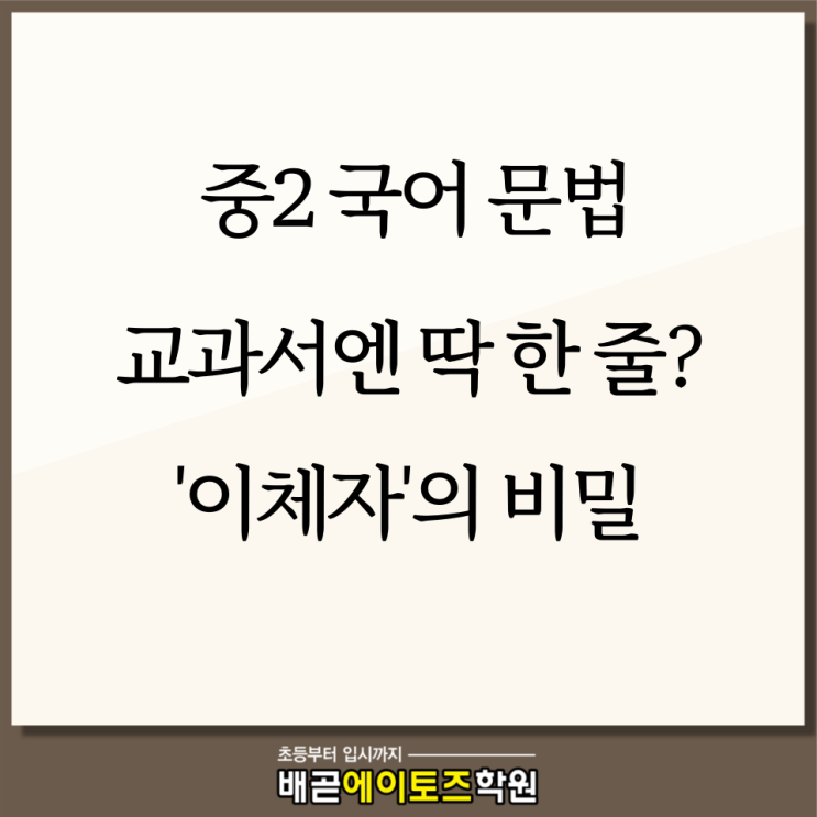 안녕하세요, 아이들의 공부습관을 바꾸는배곧에이토즈학원입니다! 중학교 2학년 국어 시간, 아이들이 가장 어려워하는 단원이 바로 '훈민정음의 창제 원리'입니다. 그중에서도 교과서에는 설명이 너무 짧아 아이들이 무작정 외우다 틀리는 개념이 있습니다. 바로 '이체자(異體字)'입니다. 오늘은 우리 배곧에이토즈학원 재원생들이 배우는 '이체자 창제 원리' 핵심 노트를 살짝 공개합니다. 이 글 하나면 이번 기말고사 문법 문제는 걱정 없습니다! 1. 이체자가 도대체 뭔가요? 한글을 만들 때 기본 원칙은 '가획(加劃)'입니다. 'ㄱ'에 획을 더하면 'ㅋ'이 되고, 'ㄴ'에....... <img src="https://blogthumb.pstatic.net/MjAyNTEyMTNfMjc3/MDAxNzY1NjI5MzcxMTI3.gd2Txb7nIu7LAhYfHhRB4_IRisGx2whZ1t2UJQXdoMwg.90GCnM9H9F7VyxB-pY0a-KNDKlfxypP58LfAS8b2RG0g.PNG/%C1%A6%B8%F1%C0%BB-%C0%D4%B7%C2%C7%D8%C1%D6%BC%BC%BF%E4_-001_%2820%29.png?type=s3" />