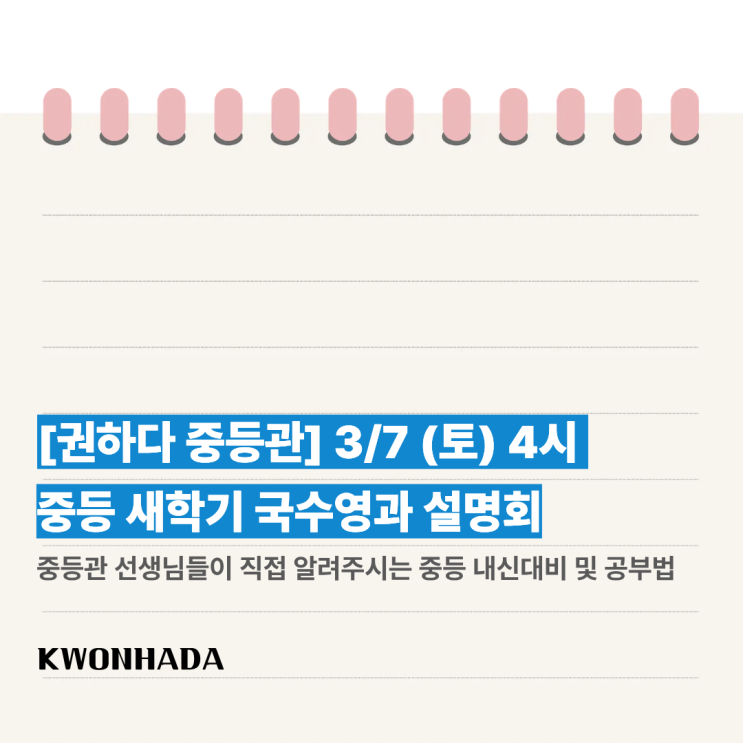 [수학을 권하다 중등관] 3/7(토)! 국수영과 중등 전 과목 새학기 대비 설명회