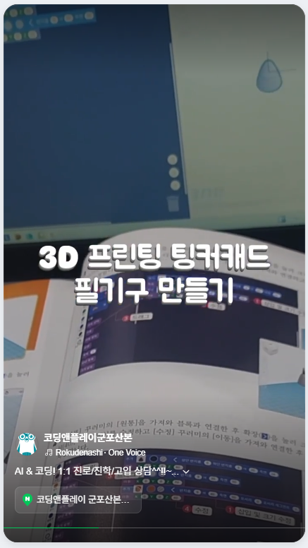 #코딩앤플레이군포산본학원, #코딩앤플레이산본센터, #군포코딩학원, #당동코딩학원, #산본코딩학원, #코딩교육, #컴퓨팅사고력, #논리적사고력, #커리큘럼, #유아코딩, #초등코딩, #신종코로나바이러스, #알버트, #산본코딩, #군포코딩, #알버트, #텔로, #ROOT, #코딩뉴스, #코딩정보, #코딩사이트, #코딩페이지, #소프트웨어정보, #소프트웨어교육, #EPL, #Scratch, #Entry, #중등코딩, #행사, #학부모, #설명회, #학부모설명회, #일상, #방역, #소독, #환기, #산본, #군포, #4차, #산업혁명, #4차산업혁명, #윈도우11, #인터넷, #진로, #루트 3D 프린팅 팅커캐드! 필기구 만들기^^!! ※ 학원 관련 문의 사항 ※ T-Story https://gpcoding.tist....... <img src="https://blogthumb.pstatic.net/MjAyNjAyMjZfMTY2/MDAxNzcyMDcwMDY5NTYy.BZRQDXiZl7SJZkTs_o1MCzXzWGyQHZAit6wc-MmH_h0g.sX9MloTZaQHm5mhrNNShnj8Zq6Snb5HQCbnOYI_k2OEg.PNG/image.png?type=s3" />